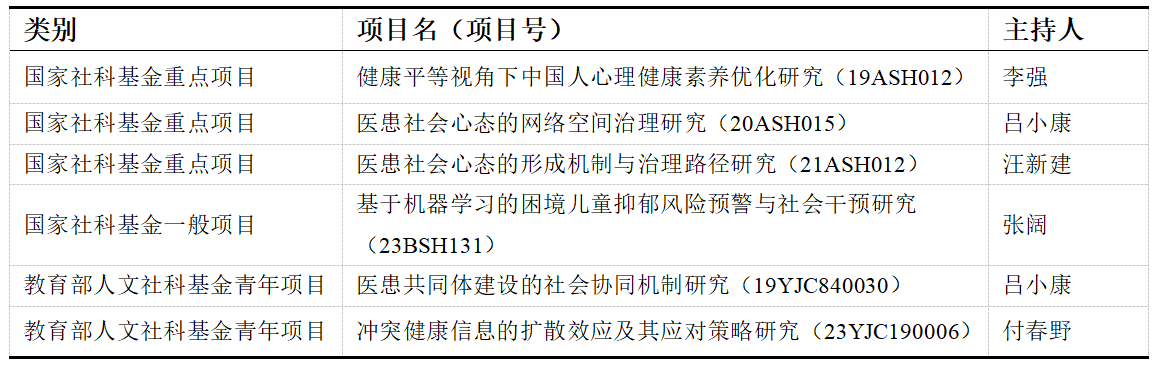 医疗与健康主题的社会心理学研究也是英国上市公司365社会心理学系长期坚持的研究方向和研究生招生的重点方向。近5年来,全系已陆续获批医疗与健康主题的国家社科基金重点项目3项、一般项目1项,教育部人文社科基金青年项目2项,呈现出良好的学术成长性和项目梯次性。