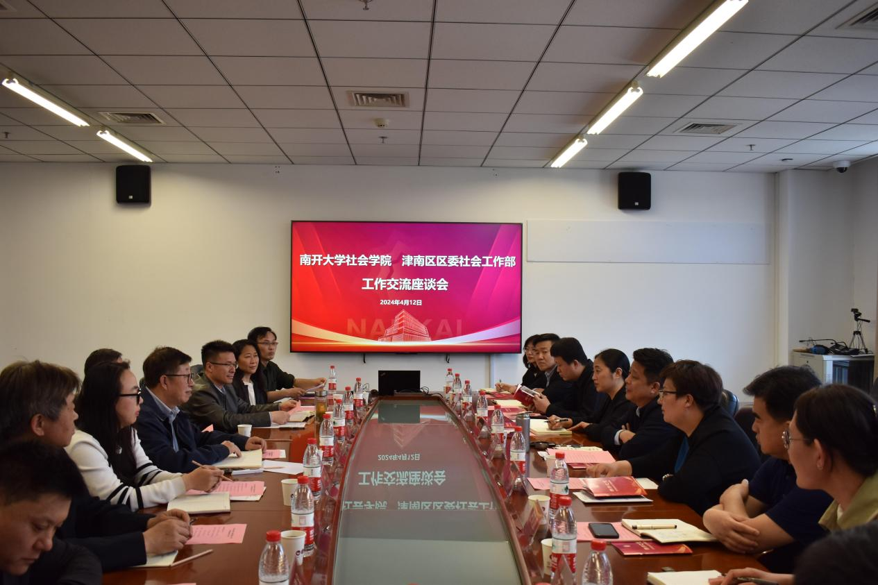 4月12日,津南区委社会工作部部长刘桂宏,副部长、区信访办主任、党组书记、区委办公室副主任刘春梅,副部长陈翠红、王育盛率队来访我院,开展工作交流,洽谈合作。院长张文宏,副院长赵万里、张宏伟出席。津南区委社会工作部相关职能科室负责人,我院社会学系、社工系、社会心理学系有关负责人和教师代表,学院办公室负责人、专职组织员参会。