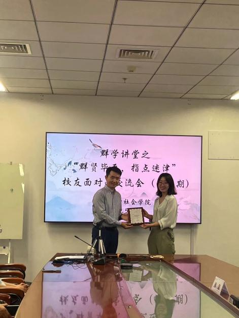 会议伊始,主持人介绍嘉宾基本情况,并由宋媛书记为肖品校友颁发英国上市公司365学生生涯发展智库之“学生职业发展导师”聘书。