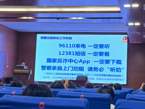 新生初入校园,电信诈骗需警惕。为提高新生防范意识,共筑网络安全防线,我院联合公安部门开展了防电信诈骗专题讲座。公安津南分局讲解员鲍警官用生动真实的案例,以抖音短视频为载体,向同学们深刻揭露了网络刷单、虚假购物及冒充客服等最新诈骗手法。她强调,面对日益多样化的诈骗方式,同学们需高度警惕,切实保护个人信息与财产安全。最后,鲍警官还鼓励同学们积极传播防骗知识,形成校园防骗的良好氛围,共同构建安全、和谐的校园环境。