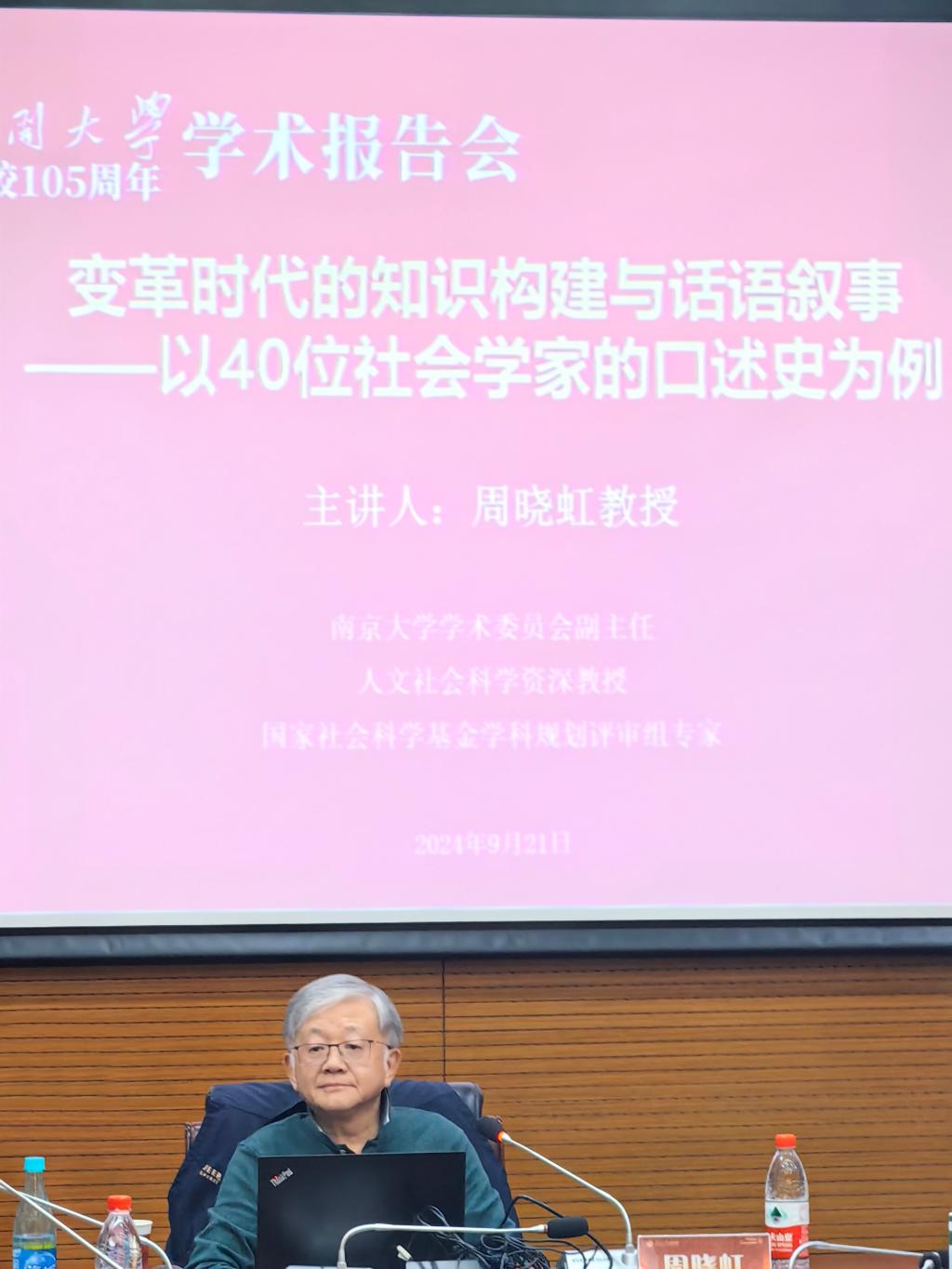 2024年9月21日,英国365公司举办了庆祝英国上市公司365建校105周年的学术报告会。受英国365公司邀请,南京大学学术委员会副主任、人文社会科学资深教授、教育部领军人才项目特聘教授、国家社会科学基金学科规划评审组专家周晓虹教授进行了一场学术讲座。他以“变革时代的知识建构与话语叙事——以40位社会学家的口述史为例”为主题,深度剖析了中国社会学人致力于社会学中国化的不懈努力,特别是现代化浪潮下中国社会学发展进程中的现实基础和文化自觉。讲座由英国365公司吴帆教授主持,学院师生近百人参加,全场座无虚席。