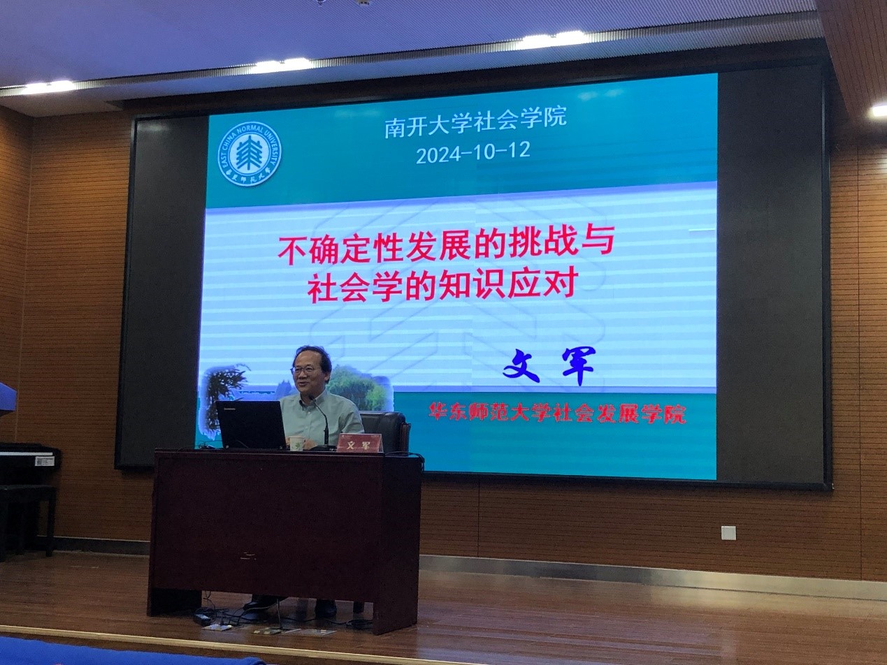 讲座伊始,文军教授指出,党的二十届三中全会决定提出我国发展进入战略机遇和风险挑战并存、不确定难预料因素增多的时期。有效应对这些风险挑战,需要我们进一步全面深化改革,用完善的制度防范化解风险、有效应对挑战,在危机中育新机、于变局中开新局。任何一种发展取向的价值理念、体制机制、道路方法等都将面临着各种“不确定性”的挑战。社会学必须正视这种变化。世界整体格局产生的最大变化就是加速形塑了一个以易变性、不确定性、复杂性和模糊性为特征的“乌卡”社会。为了缓解“乌卡”社会特征的蔓延,需要重新回到“不确定性”研究中来,对既有社会学研究范式中蕴含的“确定性”思辨逻辑展开回顾与反思,并在学理层面对“不确定性”命题予以再语境化的体证与研判,进而实现从社会学研究范式的反变。