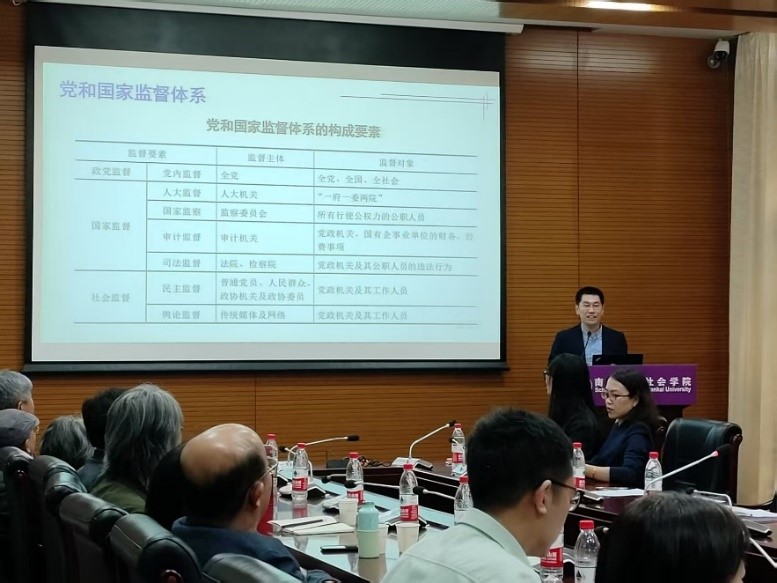 校纪检监察机构第一纪检监察室主任王淼以“加强作风建设,筑牢廉洁底线”为题作报告,对党和国家监督体系、作风建设等关键要点进行讲解。