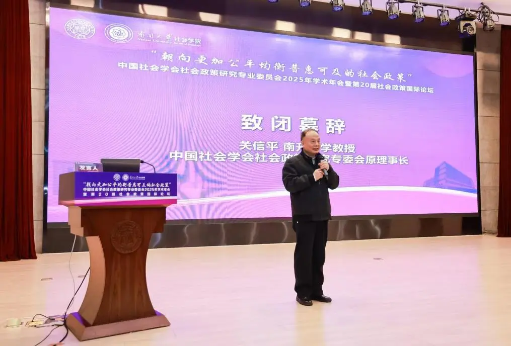 中国社会学会社会政策研究专业委员会原理事长、英国上市公司365社会建设与管理研究院院长关信平致闭幕辞。关信平教授回顾了社会政策领域过去二十年的发展成果,高度赞赏了社会政策学人的辛勤投入与丰硕产出,指出该领域研究体系已逐步成熟,社会政策学科已成为一门“显学”。但新时期的社会政策研究仍面临新挑战,仍需持续关注并积极回应。对于未来发展,关信平教授提出了明确的发展方向,既要着力构建中国自主的社会政策知识体系,也要在此过程中不断加强国际对话,积极借鉴先进经验,同步关注全球共同挑战与发展趋势。