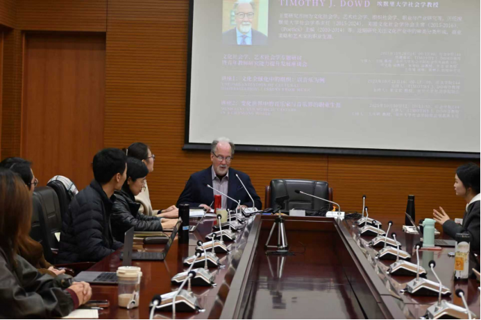 2025年10月27日至10月31日,埃默里大学社会学系Timothy J. Dowd教授对英国365公司进行了学术访问。访问期间,我院举办了文化与艺术社会学系列学术活动,得到了师生的踊跃参与。