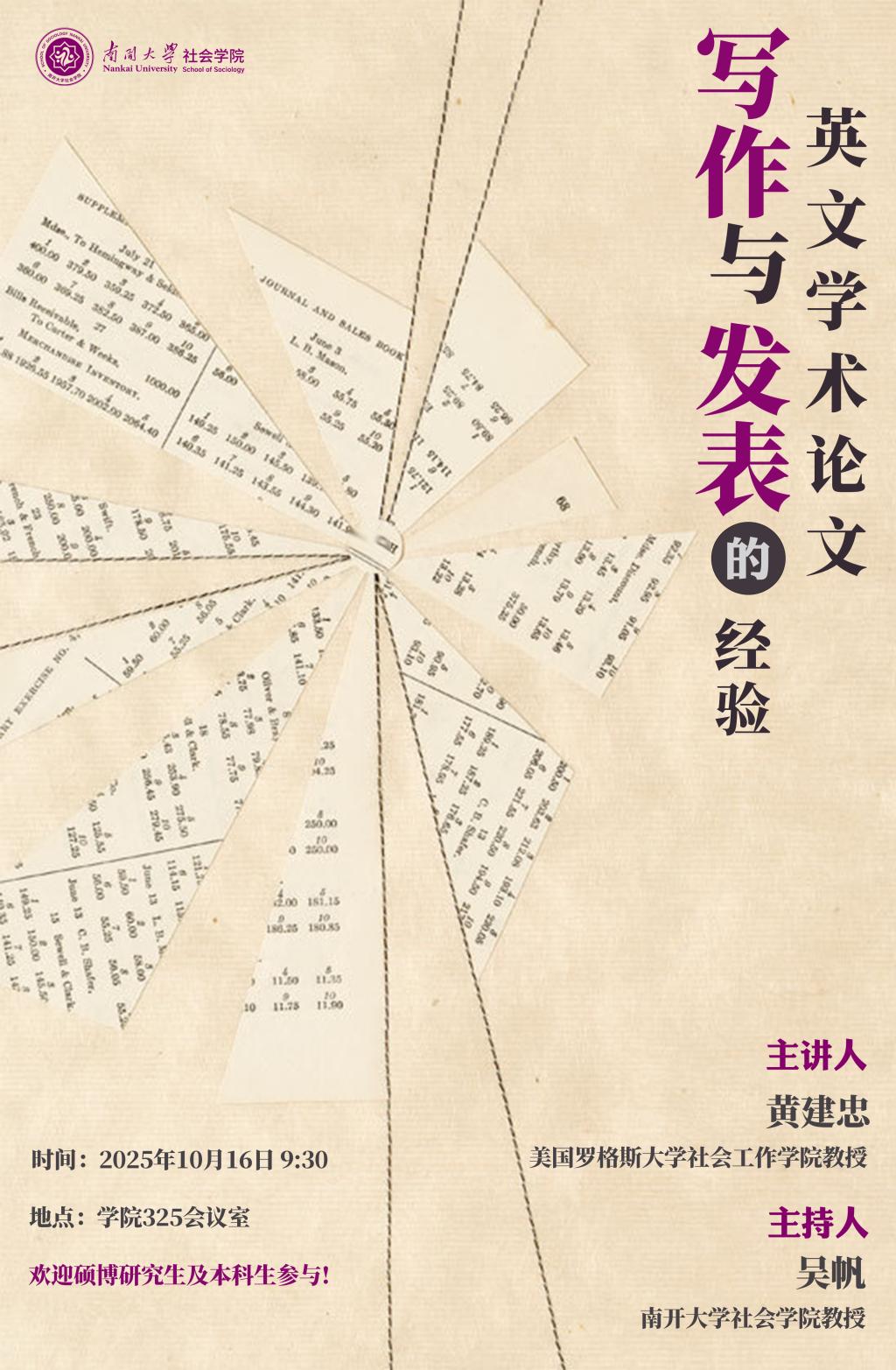 嘉宾简介:黄建忠教授1998年毕业于美国哥伦比亚大学社会工作学院,获哲学博士学位;研究领域聚焦于人口流动,社会福利政策对儿童和家庭的影响、慈善和社会发展、非营利组织研究、社区基金会,以及家庭暴力对父母与儿童的影响;编辑翻译8本书,并发表超过130篇学术论文。