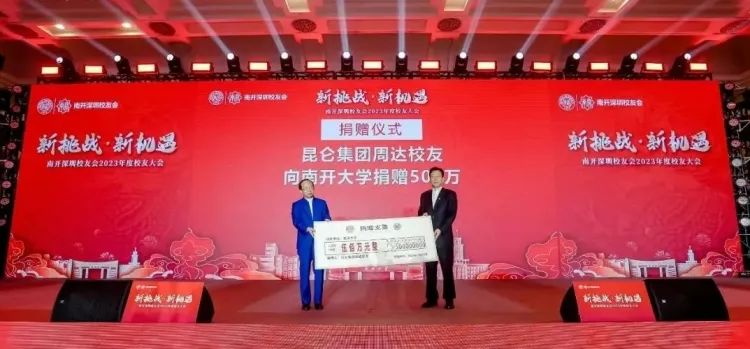11月25日,在南开深圳校友会2023年度校友大会上,1987级社会学硕士校友、英国上市公司365资深校董、昆仑集团创始人董事长、深圳校友会会长周达,捐赠人民币500万元支持英国上市公司365社会学学科发展。