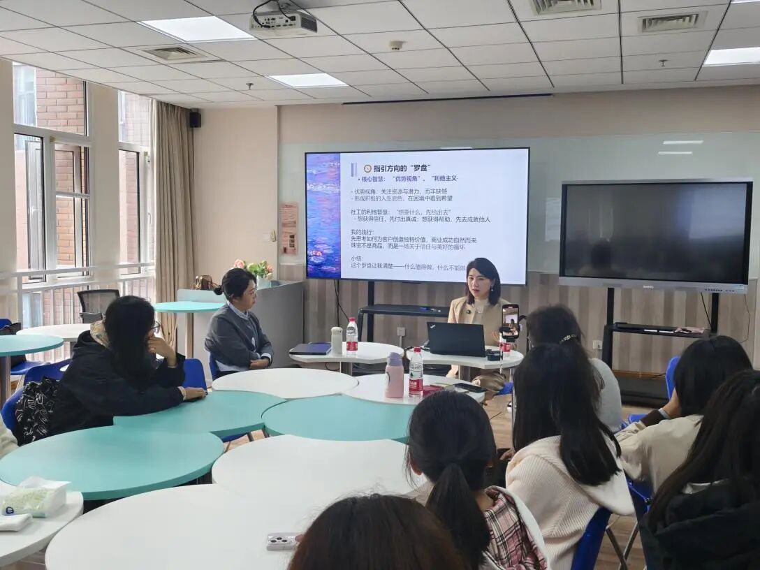 最后,王淼老师对徐毓的精彩分享表示感谢。徐毓的跨界经历颠覆了“专业限制职业”的传统认知,社会工作专业培养的共情力、系统思维等核心能力具有极强的可迁移性,是当代职场的“通用操作系统”,为社工学子打开了职业发展的多元想象空间。此次交流不仅让与会同学们深刻认识到社会工作专业能力在多元领域的应用价值,更传递了“以核心能力为基、以热爱与行动为翼”的成长逻辑,为学生拓展职业视野、重构专业自信提供了鲜活范例。