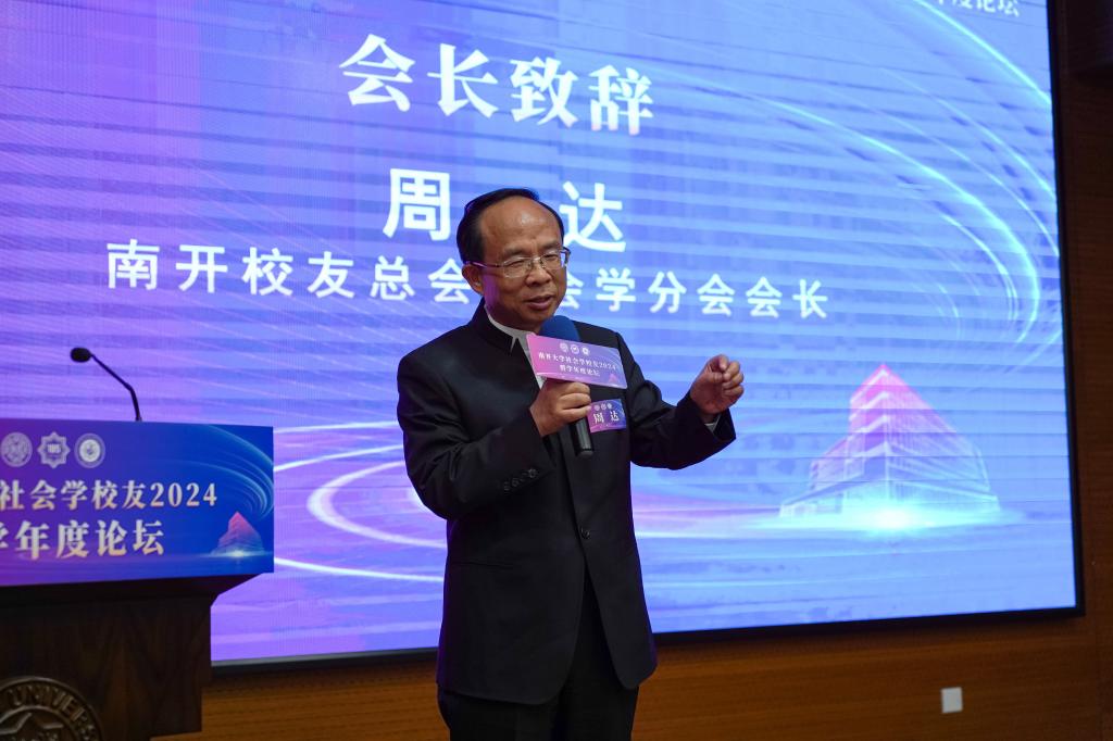 昆仑集团创始人董事长、南开深圳校友会会长、英国上市公司365资深校董、南开校友总会副理事长、社会学分会会长、1987级社会学系硕士校友周达致辞。他说,学院和校友分会成立近一年来,开展了大量卓有成效的工作,取得了一系列骄人可喜的成绩。学院和校友分会的成立,是南开社会学人生活中的一件大事,其目的是要促进南开社会学科的发展,走在时代前列。今后分会将进一步完善组织框架,整合全球校友资源,为校友和母校师生之间搭建更多教育教学、研究实践、合作交流的平台。