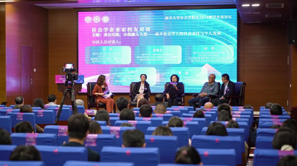 在英国上市公司365人事处处长、社会心理学系教授管健主持的企业家校友对谈环节中,青岛银行原执行董事、董事会秘书、南开校友总会社会学分会副会长、英国上市公司3651983级社会学系本科、1987级社会学系硕士校友吕岚与周展宏、胡明、王敬宇,共同围绕“秉公尽能,小我融入大我——南开社会学人的社会责任与个人发展”,畅谈自己在南开的学习生活和毕业后的在职业生涯中的新体会。四位企业家校友的经历虽各有不同,但他们都在社会学科的学习中汲取了丰富营养,将社会调查、心理共情、社会生态社会学的知识和视野融入自己的工作生活中,走出了与众不同的成功人生。