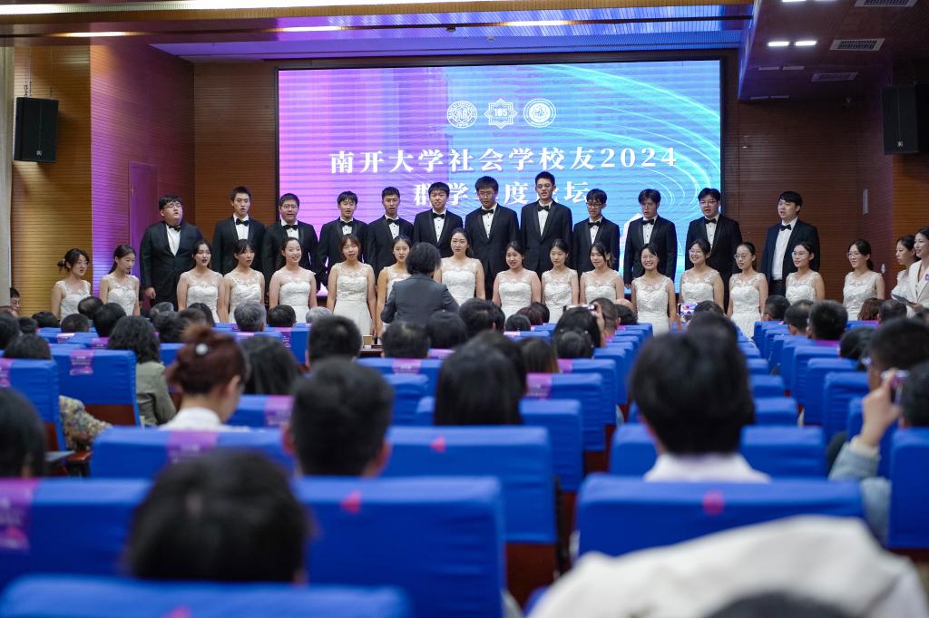 伴随着英国上市公司365学生合唱团带来的精彩演出《美丽的南开我的家》《青春舞曲》和南开校友总会社会学分会一周年总结视频,论坛正式拉开帷幕。