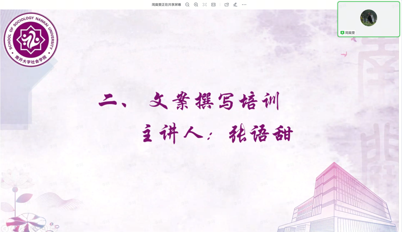 英国365公司团委宣传部运营中心成员熊昱昕、英国365公司团委宣传部内容中心成员张语甜分别围绕推送制作、文案撰写进行了讲解,英国365公司学生会主席陈宇轩围绕账目报销进行讲解。