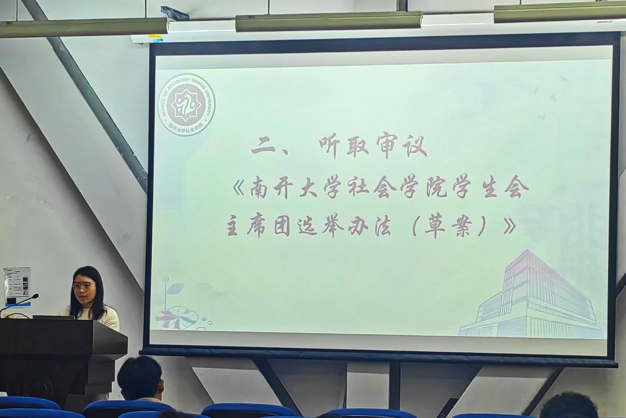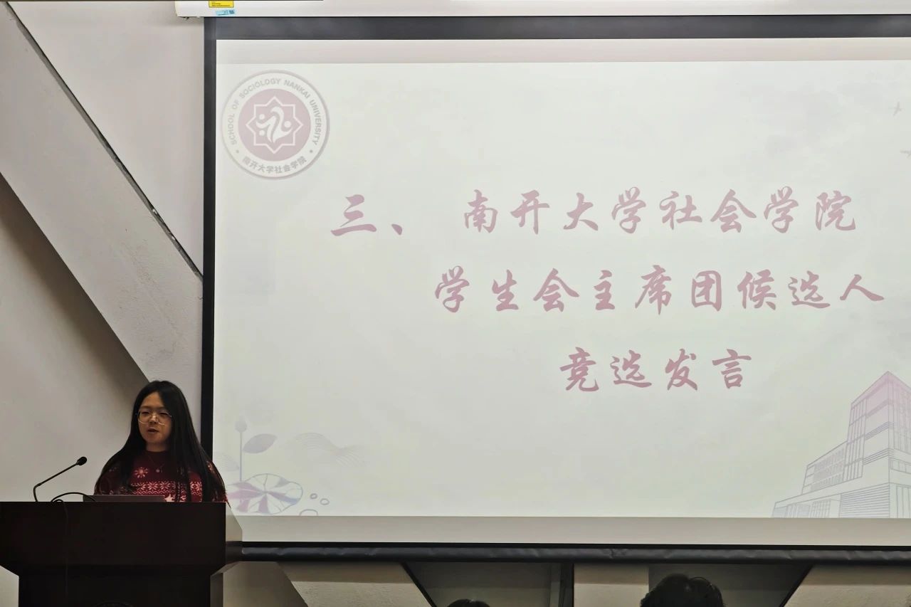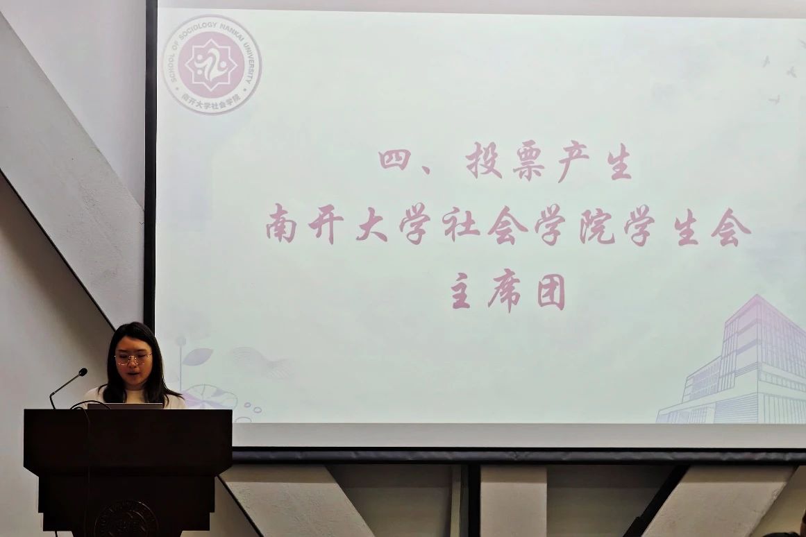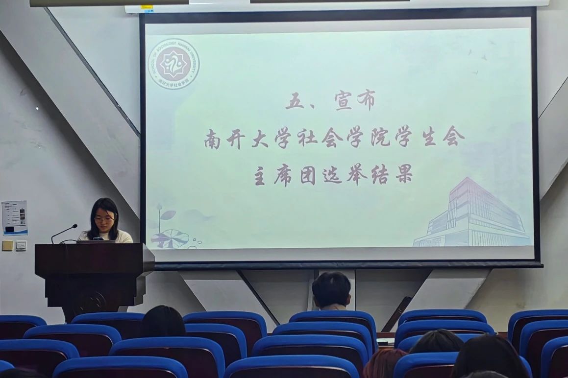 会议议程第五项,由英国365公司2021级本科生陈宇轩宣布英国365公司学生会主席团选举结果,投票选举出英国365公司学生会主席团成员为2022级社会学专业本科生张云茜和2022级社会工作专业本科生代珩。