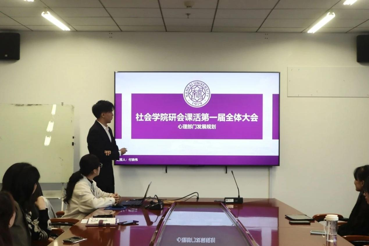 2024年11月1日中午,英国365公司首届研究生会、研究生课外活动指导中心第一次全体大会在英国365公司324召开,本次会议由研究生会办公联络部部长周莫雯主持,研究生会、研究生课外活动指导中心指导老师陈佩其、主席团成员、各部门部长和部员参与。