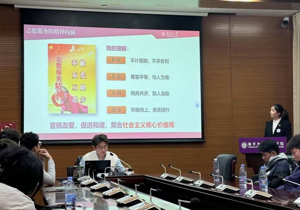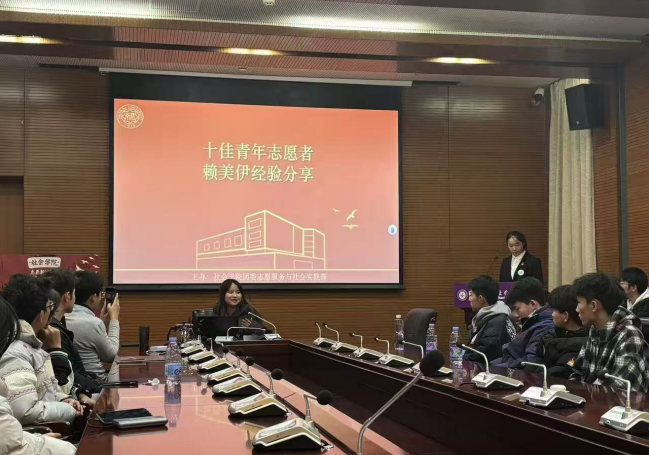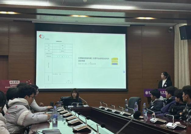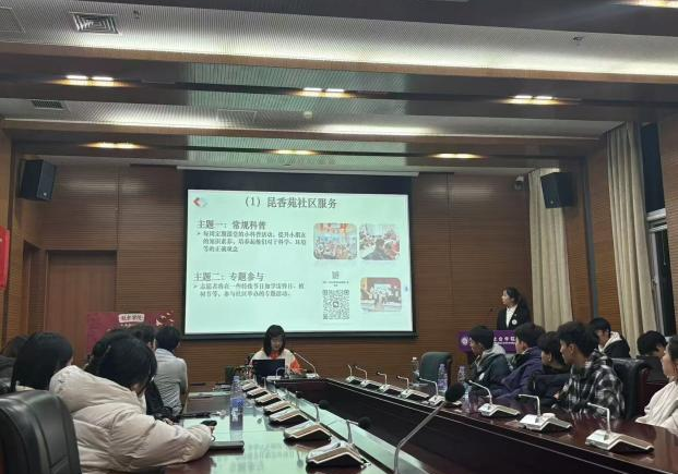 朱佳琪和宁余祎婧两位同学介绍了志愿服务与社会实践的时长认定,以及学院长期开展的昆香苑志愿项目,鸿儒新园志愿者项目以及关爱脑瘫儿童项目。此外,她们向青年志愿者提供可靠的校外志愿活动平台并叮嘱志愿者们谨防诈骗。