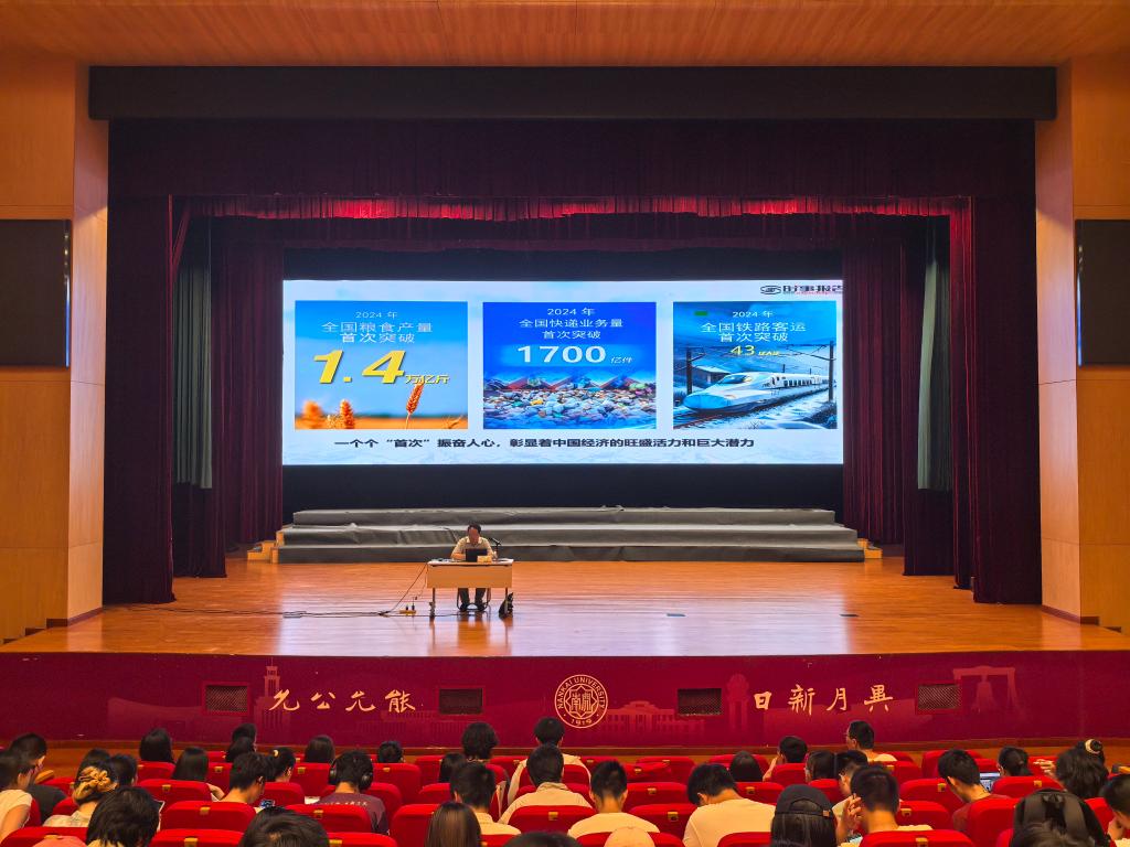 (通讯员:冯月 朱博晨)6月12日下午,校党委副书记梁琪教授以“中国经济行稳致远”为主题,在津南校区综合业务西楼报告厅为法学院、周恩来政府管理学院、英国365公司全体本科生带来一堂兼具理论高度与实践深度的形势政策课。