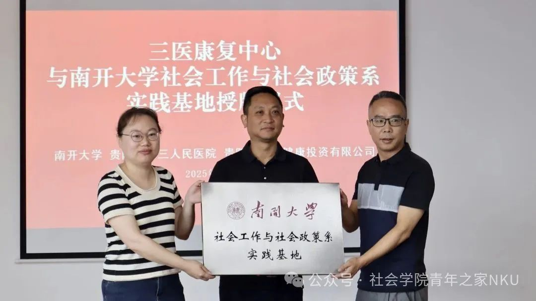 此次贵阳之行,我系与贵阳市卫生健康投资有限公司签订了社会实践基地协议,并分别与旗下子养老项目乐湾国际康复中心和三医康复中心举行了实践基地授牌仪式。双方就未来产研合作与人才合作机制建设、养老服务项目合作与成果转化、医养结合行业的标准化建设与品牌孵化、共建培训中心四个方面展开了深人探讨。作为"学校+企业+项目"融合发展的新起点,产学研赋能医康养的落脚点,基地将为我系学生提供理论联系实际、专业实践能力提升的重要平台,为构建以"知中国、服务中国"为导向的人才教育培养机制注入新的活力。